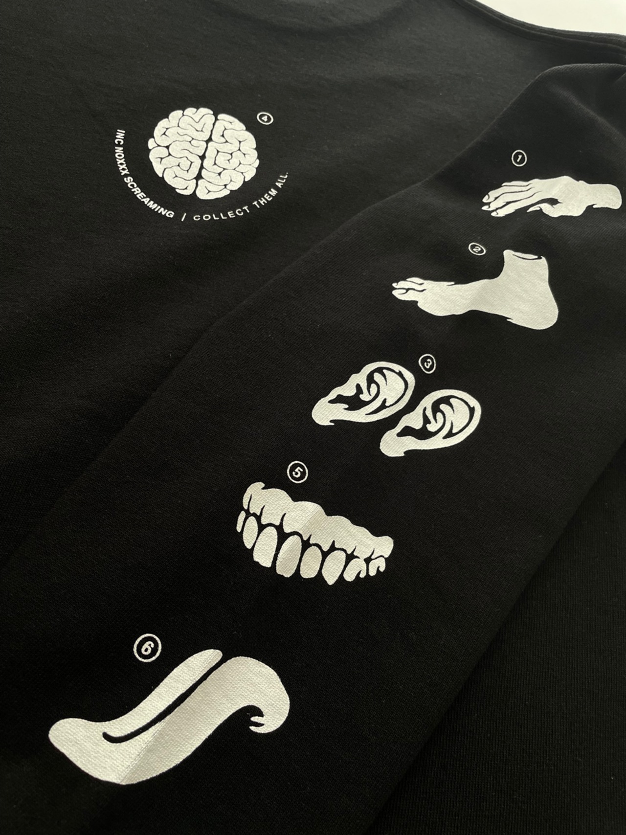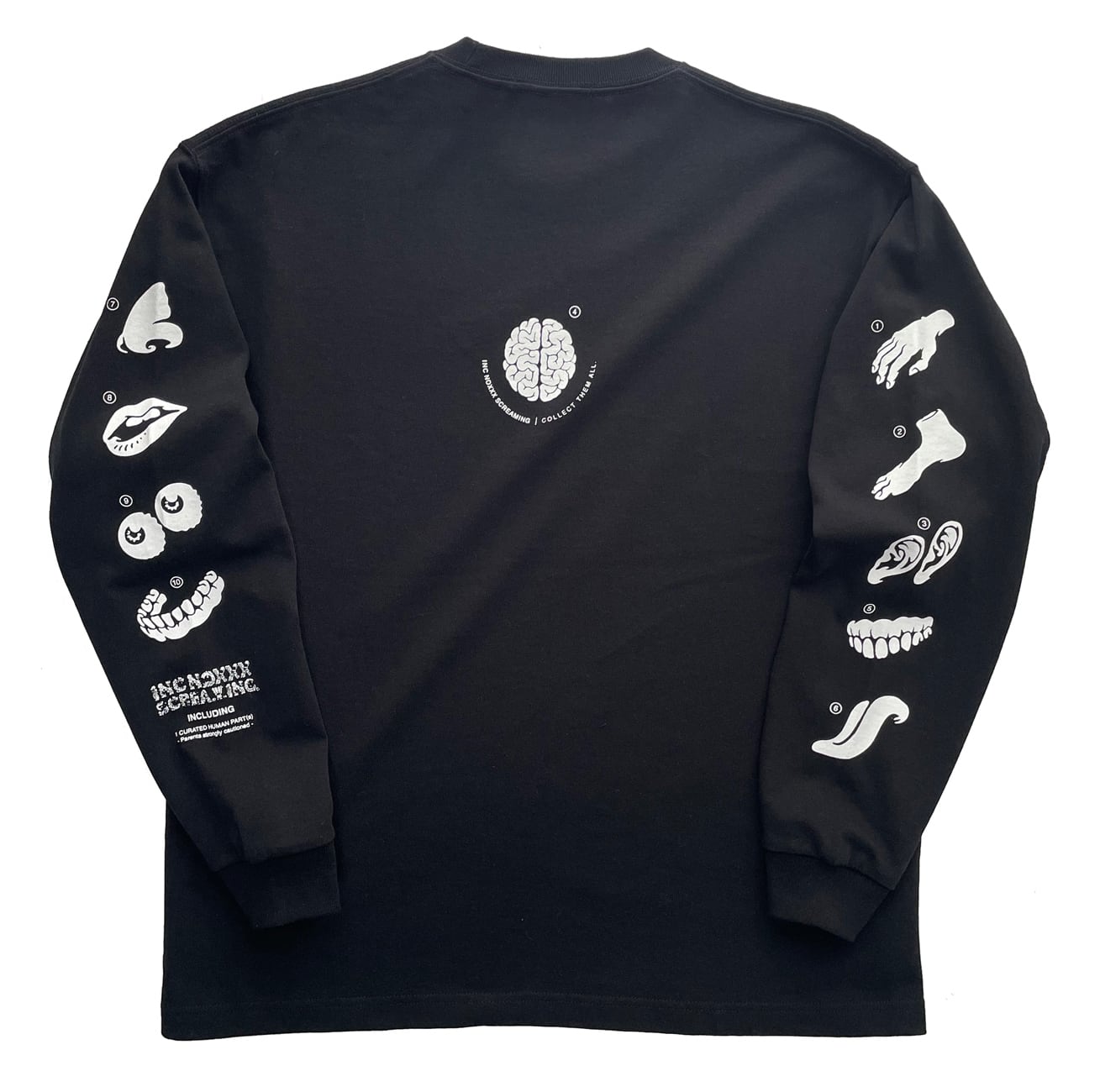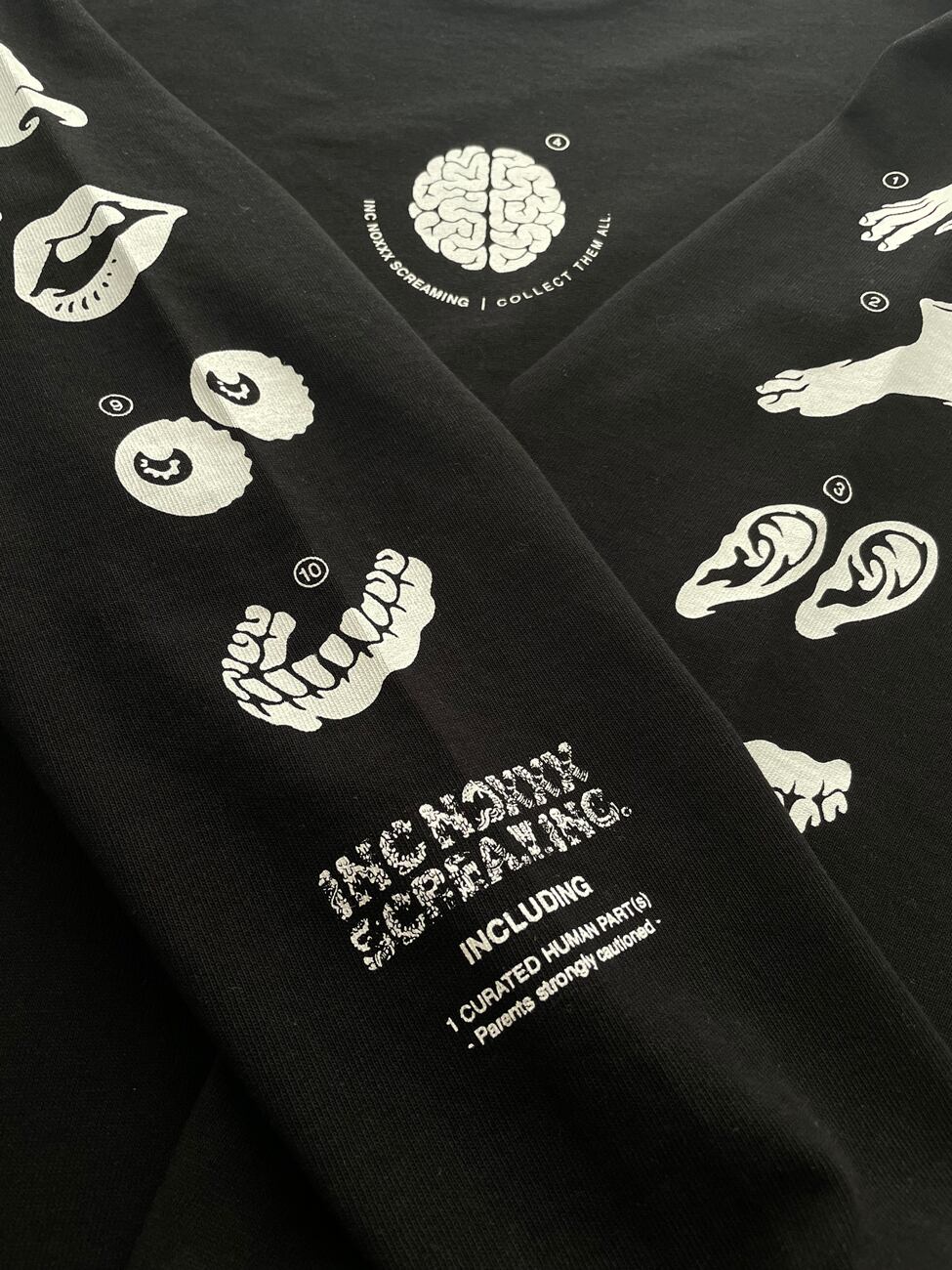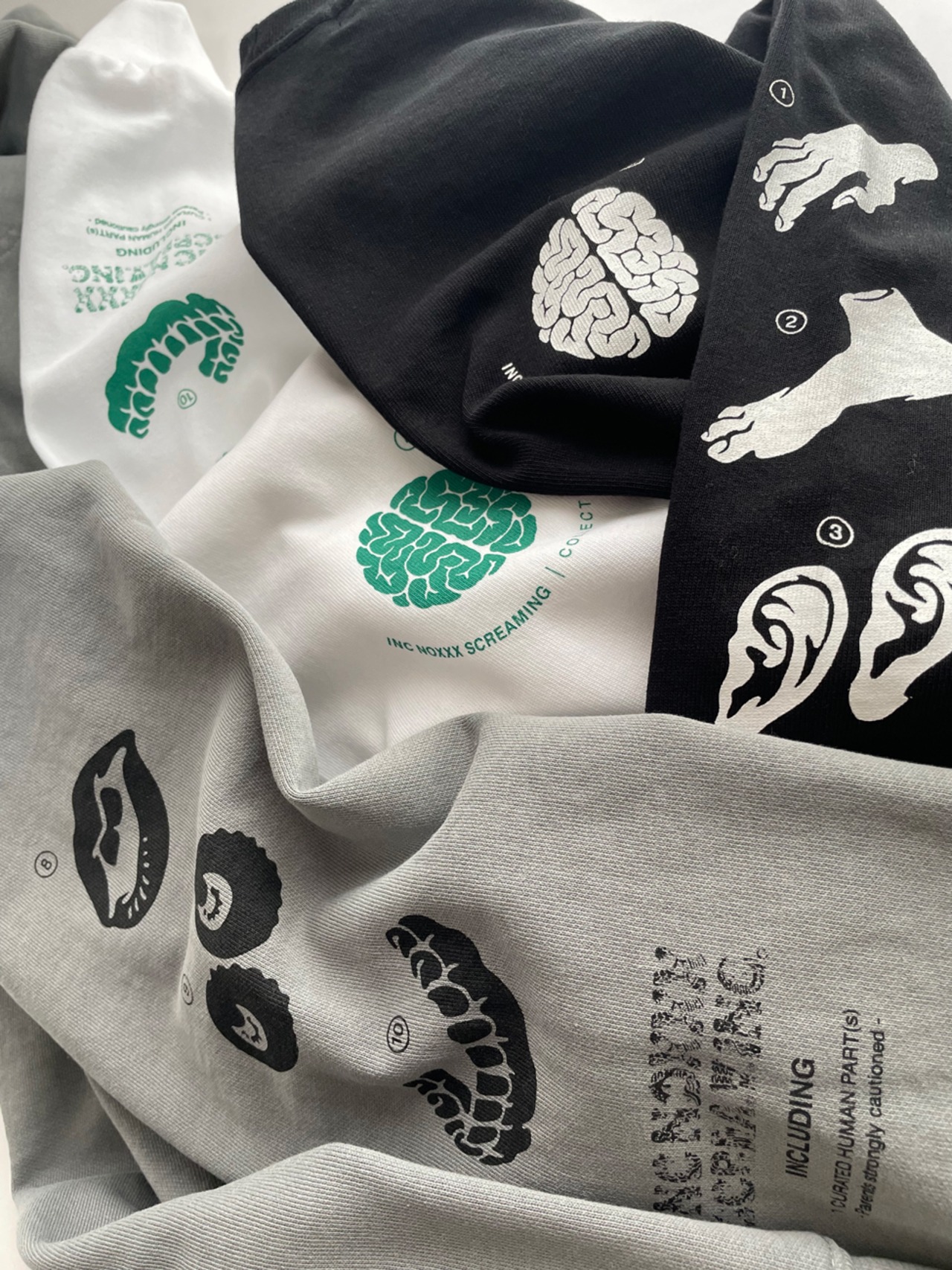 玩具の取扱説明書を題材としてモノトーンで表現したPARTsシリーズ。デザイン細部を新たにアレンジし、スウェット生地に近い極肉厚な Hardcore weight ボディで復刻しました。掲載器官全10種。