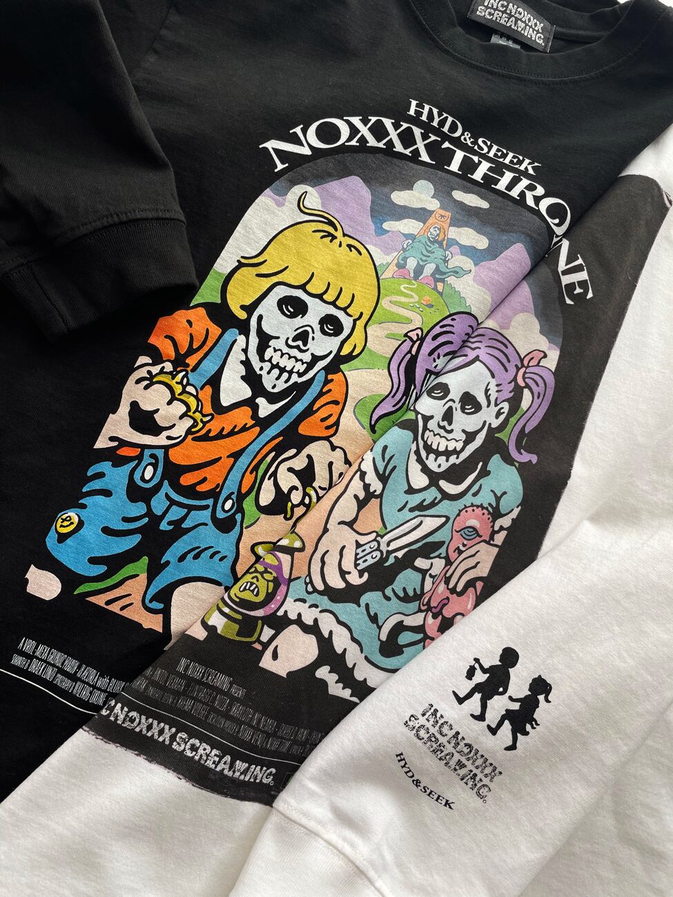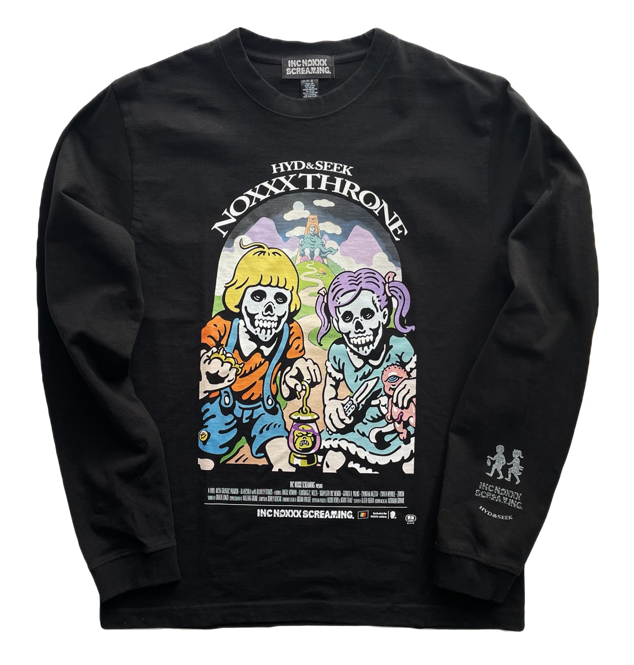 INC発の髑髏兄妹〈HYD&SEEK〉の冒険を描いた映画「NOXXX THRONE」(1979) の劇場ポスターが Long Sleeve T-shirt になりました。 ※一部架空